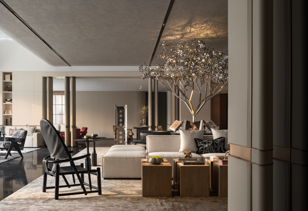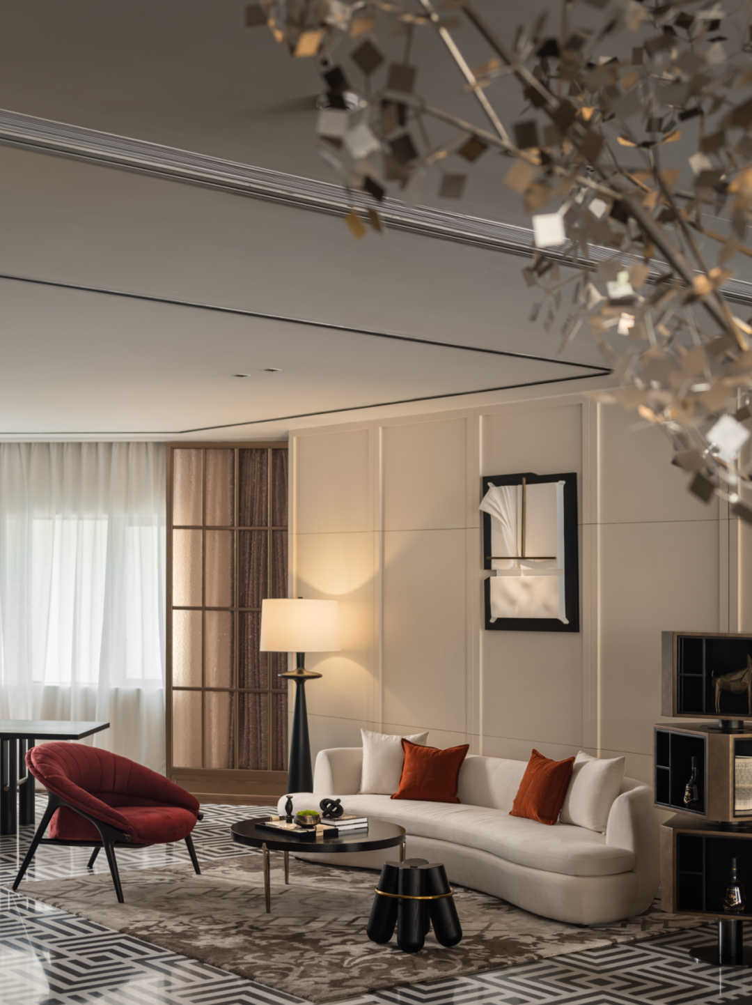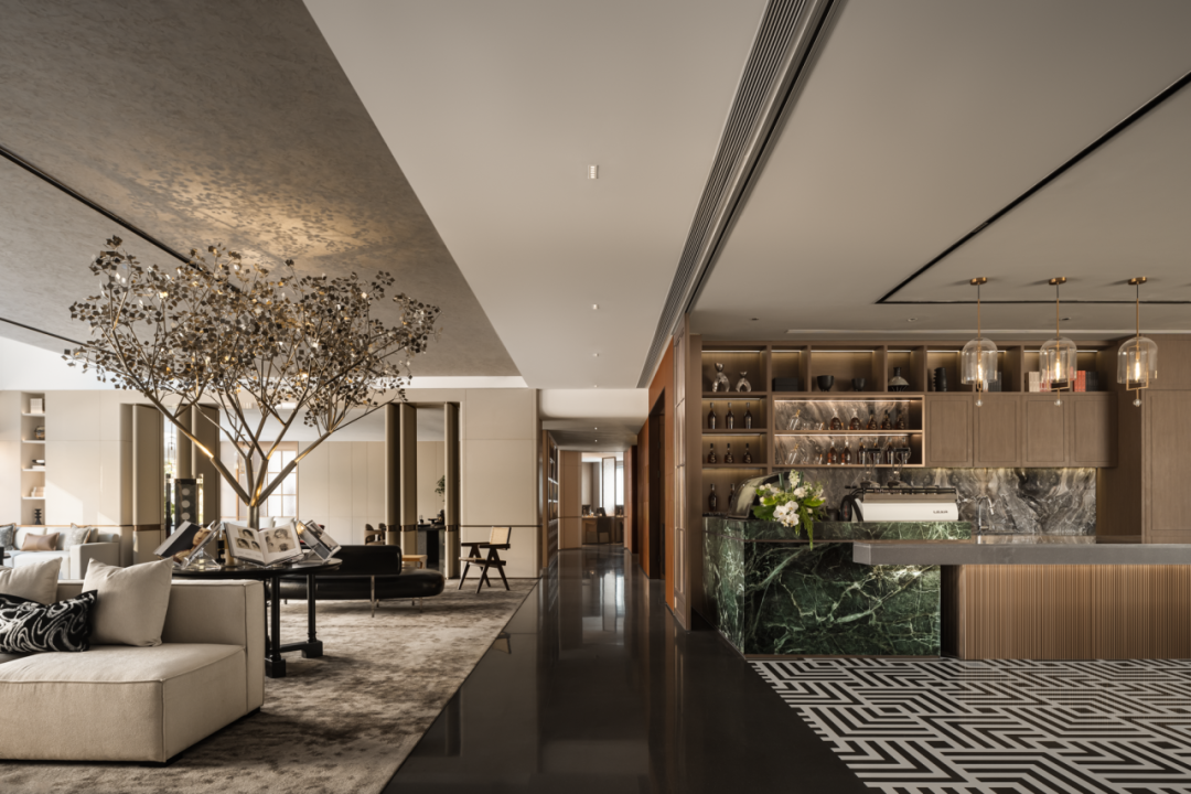 项目地下室公区的设计风格将东方韵味与现代时尚完美融合。