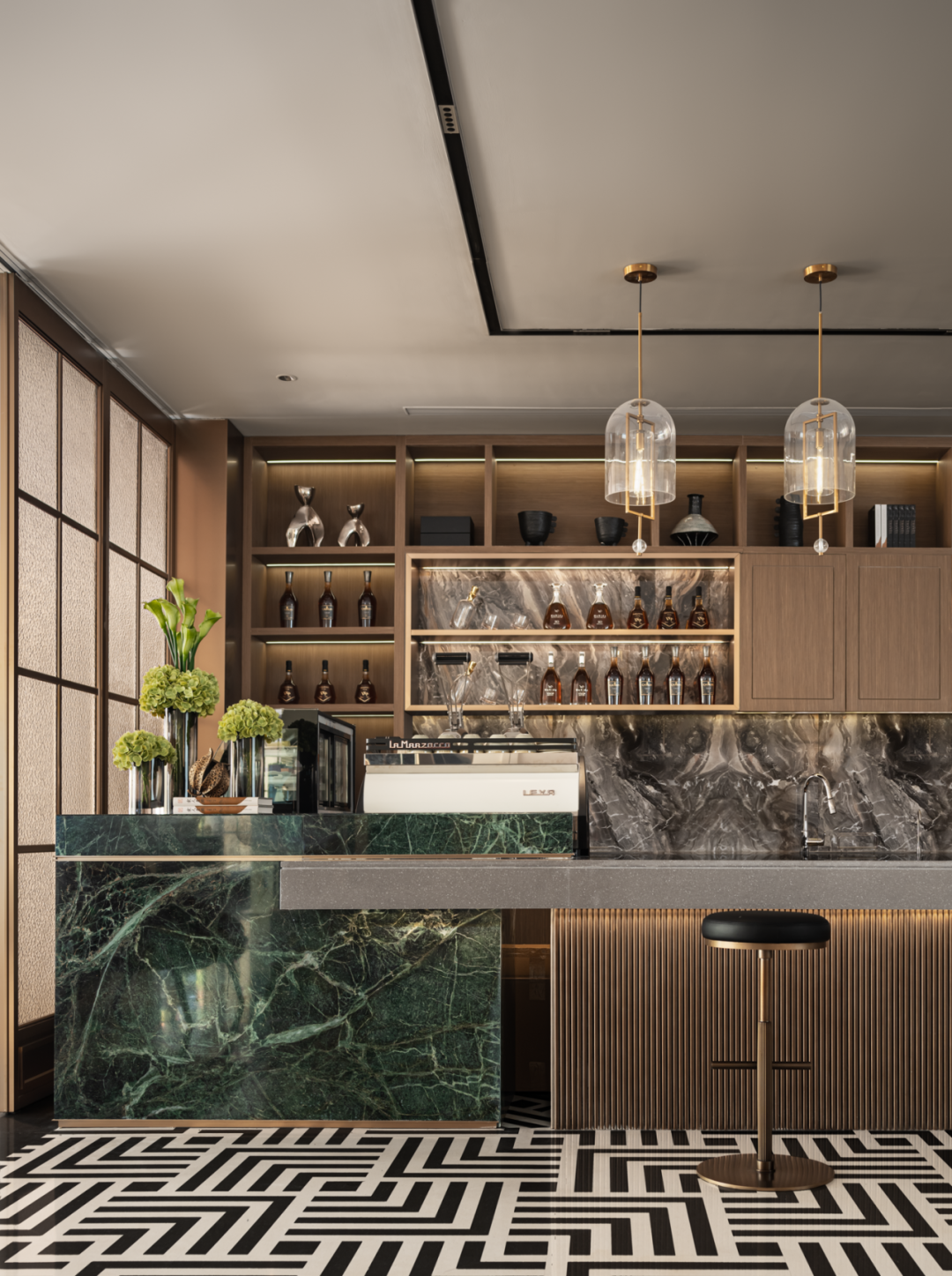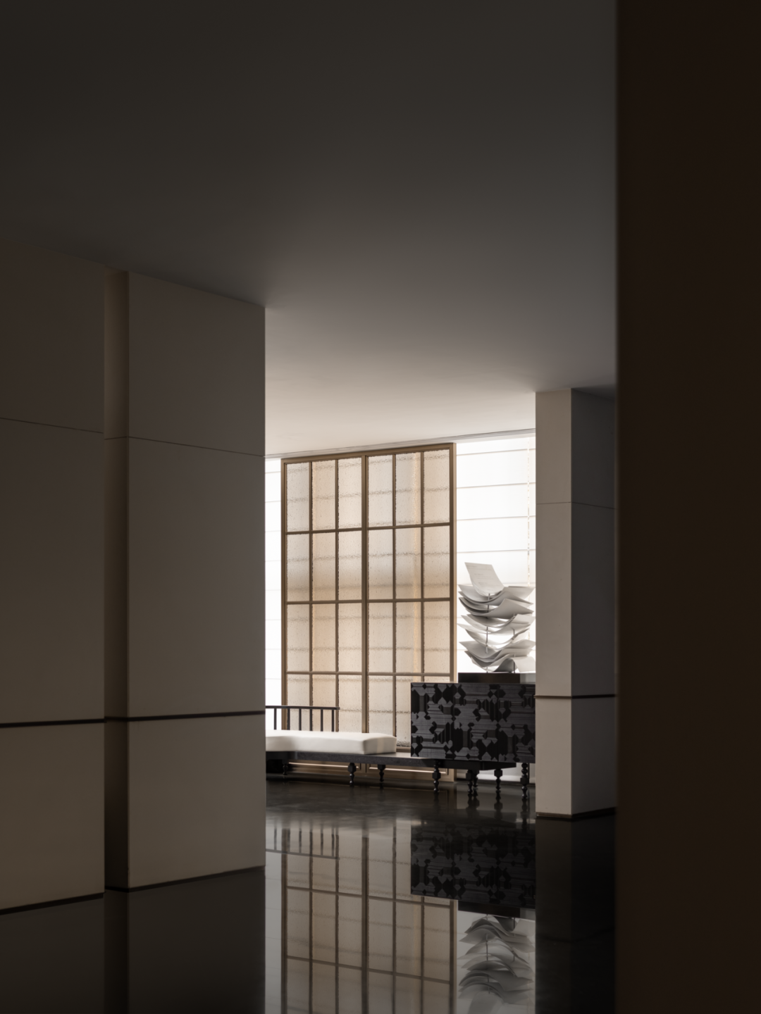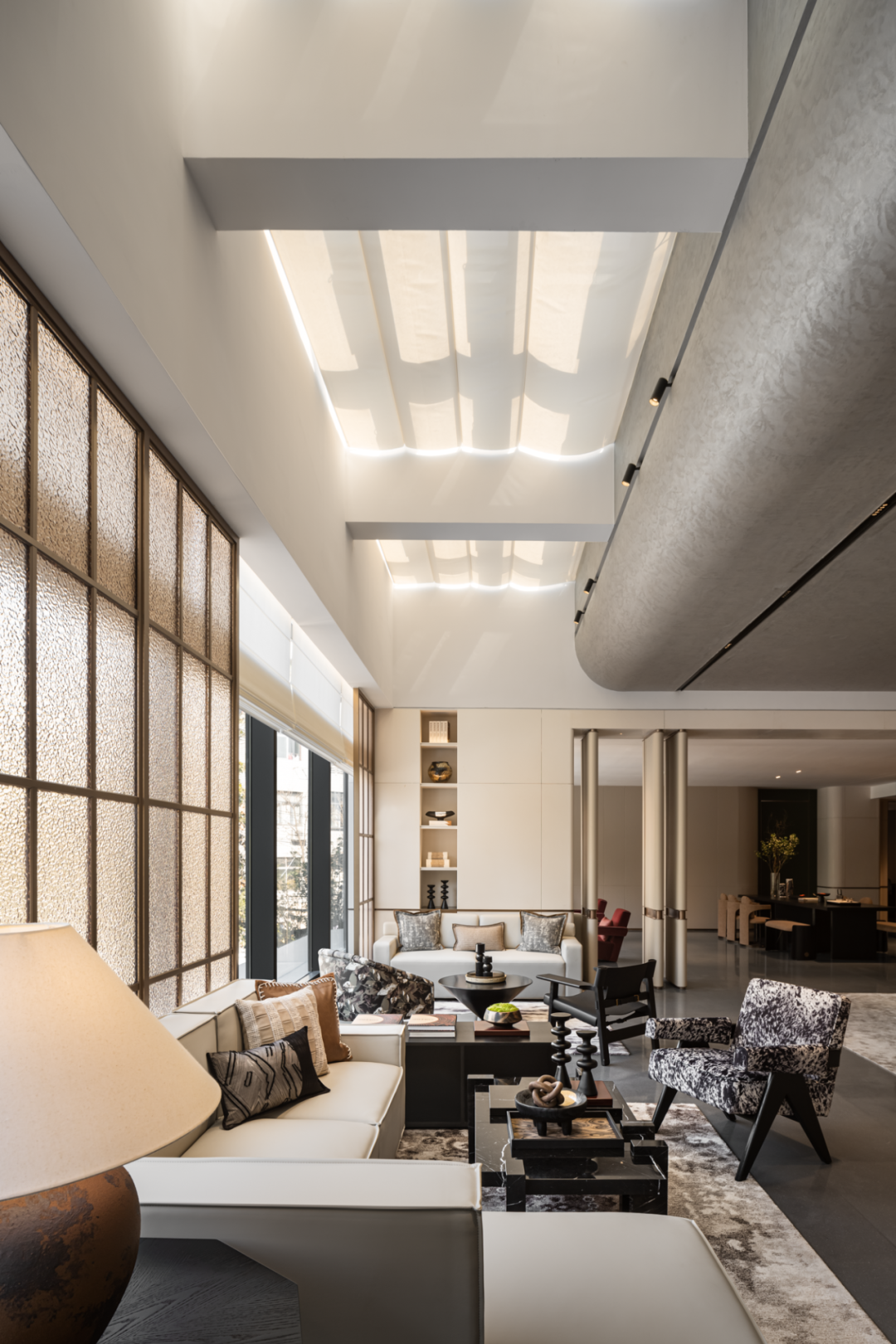 多重材质与经典的拼花符号在此相会,满足功能诉求的同时,也贯穿起此时此地的灵光与流金岁月的风情韵味,旧故事的新篇章,从这里开始。