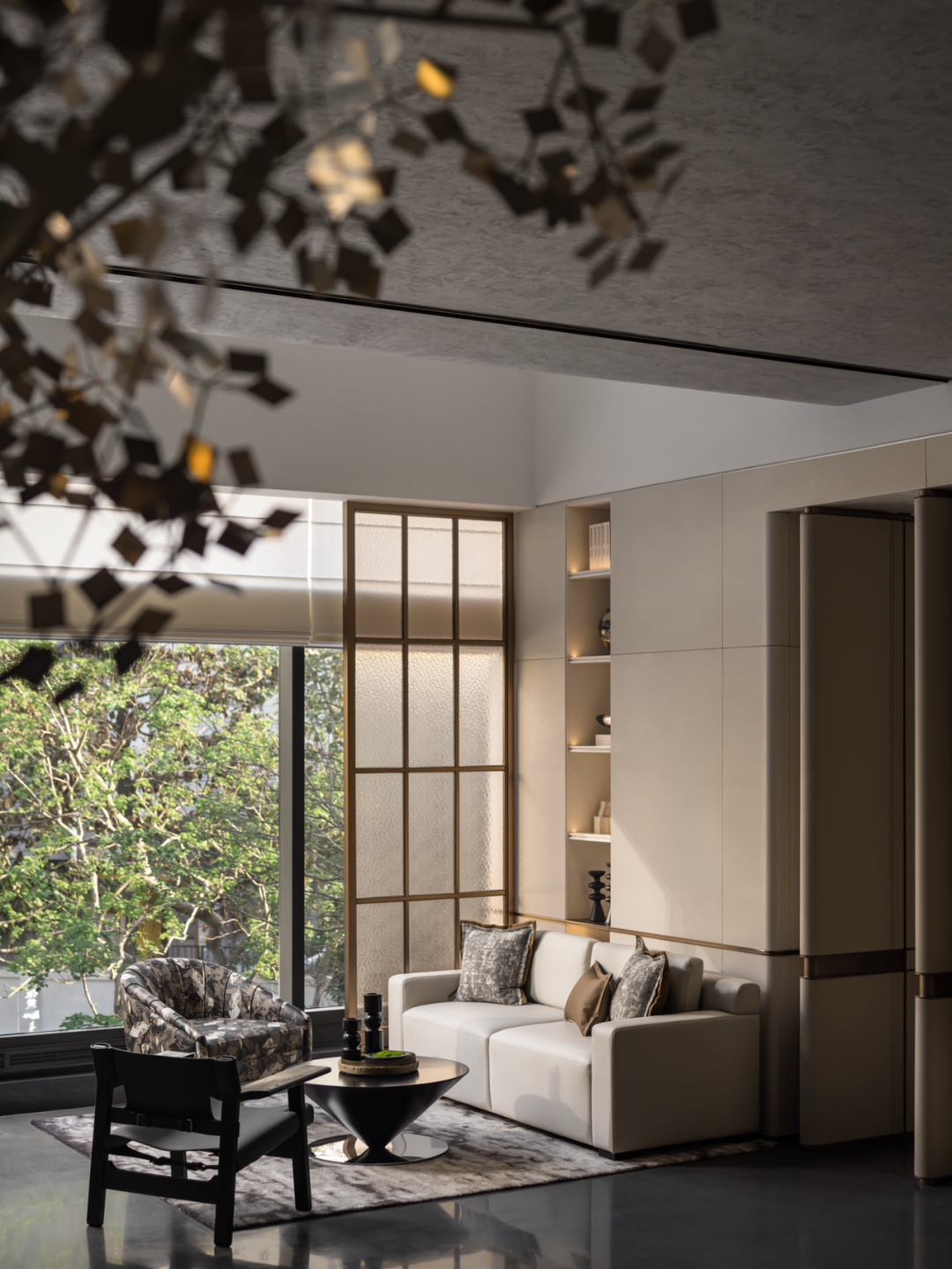 洽谈区营造了通透开阔的视野与流畅动线,清光肆意流淌于室内,无形中放大了对细微变化的感知。