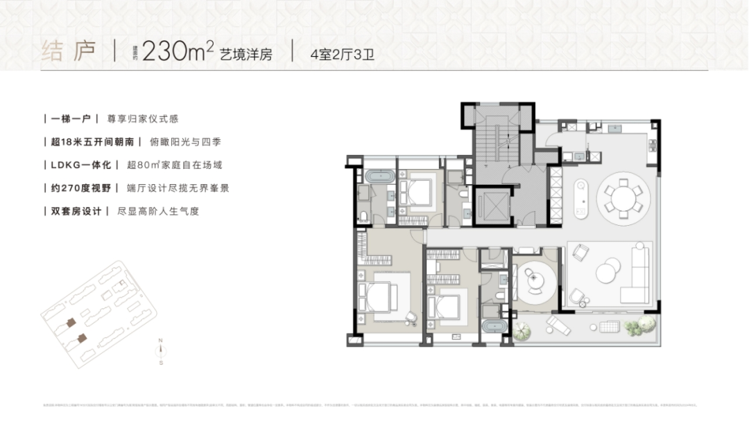 目前,九庐200㎡和230㎡两大实体洋房样板间,已经惊艳亮相,将终极改善产品的奢阔感,交互感,松弛感全部拿捏!建面约230㎡洋房户型,由全球顶尖酒店室内设计师事务所CCD郑忠事务所执笔设计,一单元一户设计,无论是空间尺度、户型精造、还是室内配置,带给人“一层一世界”的极致人居。