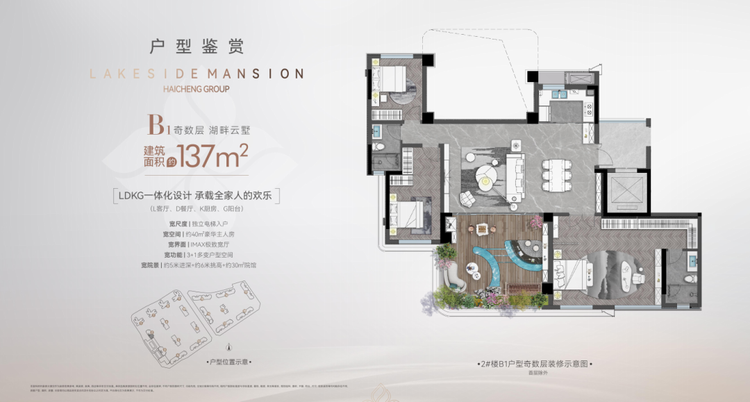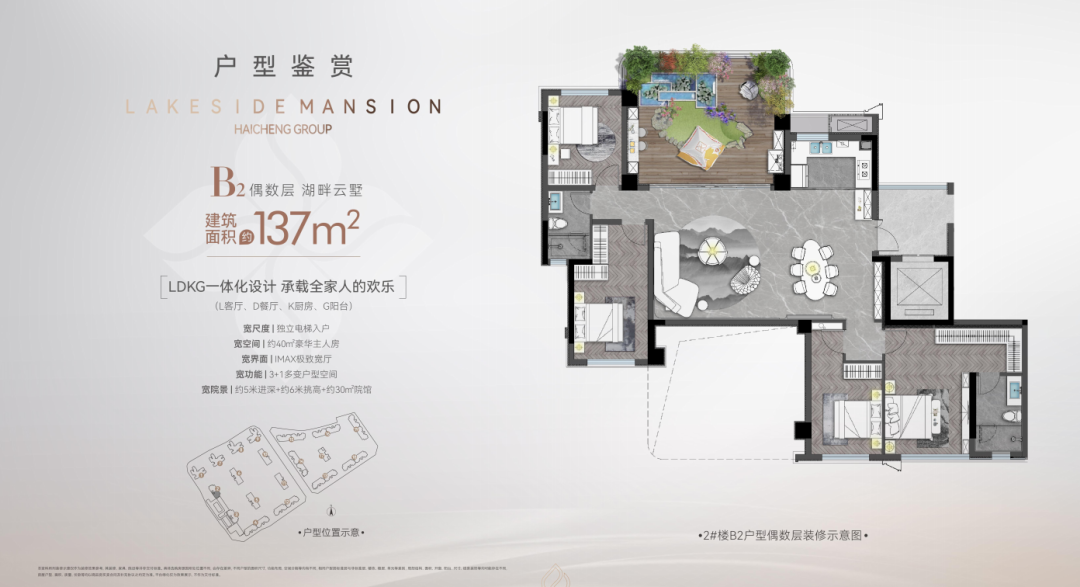 约6000平方米的湖景区域,约340米的黄金湖岸线,为城市中的奢华舒适生活提供了一处难得的收藏。
