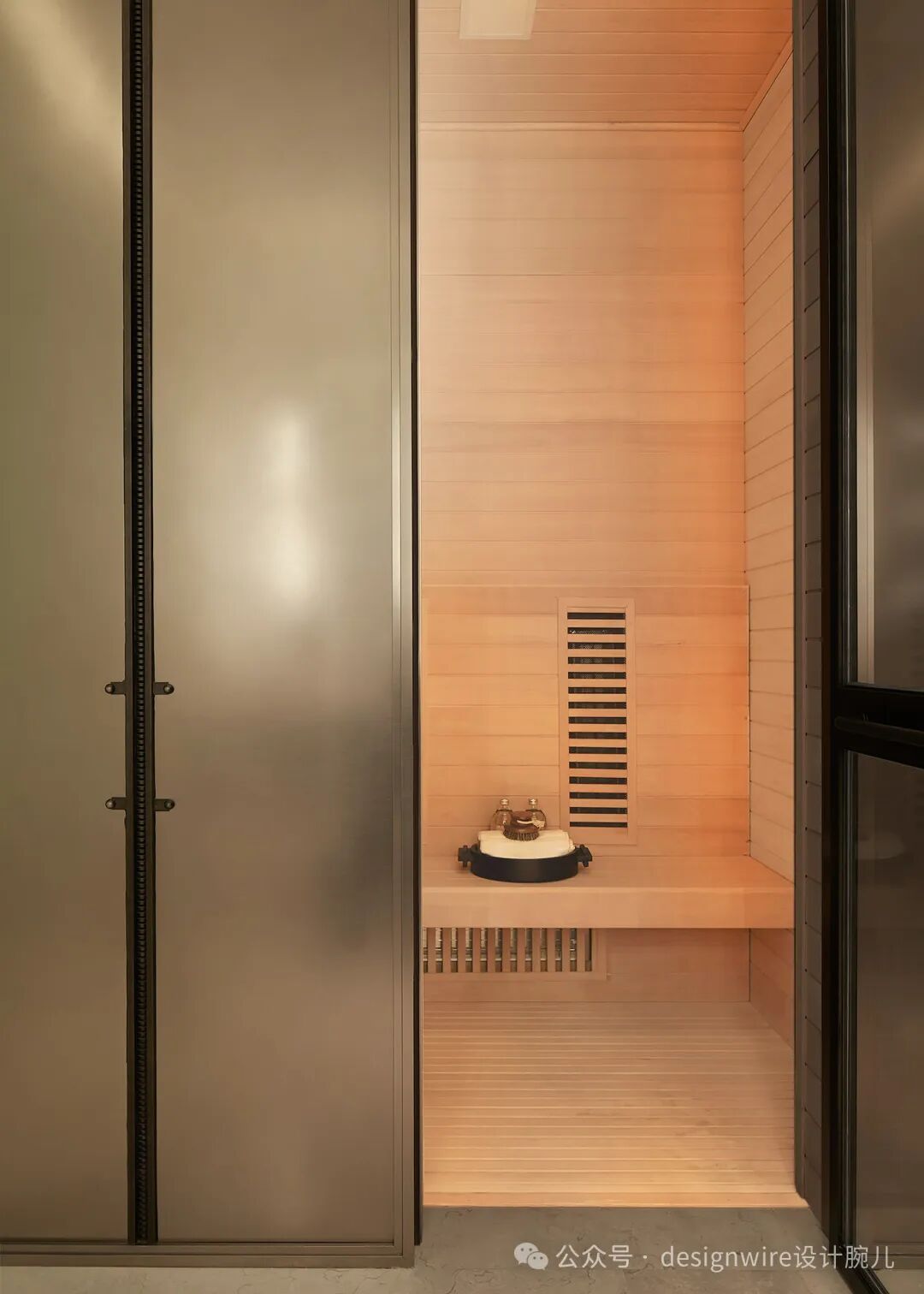 私区中庭的“小剧场”空间,走廊偏厅护墙系统设计灵感来源于剧场中的包厢,整体呈现出对剧场概念的解构主义重组,以及历史和现代的碰撞。