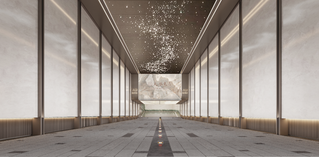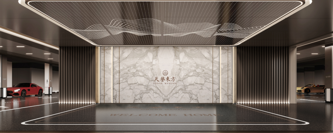 未来,业主可以在恒温泳池畅游,可以在健身房释放多巴胺,可以邀上好友来场高尔夫球赛,也可以在行政酒廊会友,在影音室欣赏一段影片……8大主题空间,为园区高净值人群带来了高奢酒店的度假体验。园区豪宅的高门阔府形制,大约是从天誉东方开始。超长府院门庭,恢弘感油然而生。进口蓝翡翠奢石,装点入府威仪。与奢石辉光呼应的,是3D钻石星光穹顶天幕,地面是高定万字纹仿古铜地刻,每一步都映照着身份尊贵的你。社区门庭是奢石,单元门厅也是奢石。天誉东方单元门臻选名贵石材搭配香槟金铝板,入户大堂精选翡翠绿岩板,顶部3D圆弧吊顶,墙面局部木纹铝板铺装,辅以透光云石引导,一路星光温暖你回家的路。第四,千万级星空顶车库,成就园区“地库直通轨交”生活。有谁没被劳斯莱斯星空顶震撼过?天誉东方打造了同款车库星空顶。坡道墙面铝板干挂,地面石材铺装,格栅吊顶,格调拉满。