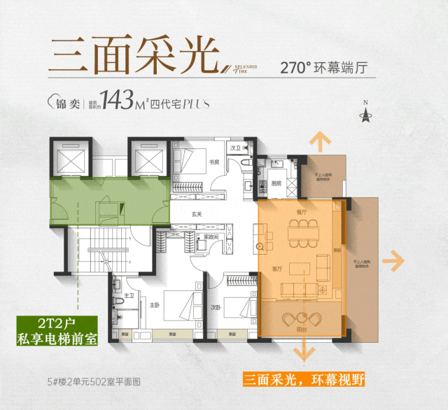 3+X设计,同时还有270°环幕端厅,同面积段户型无法想象。