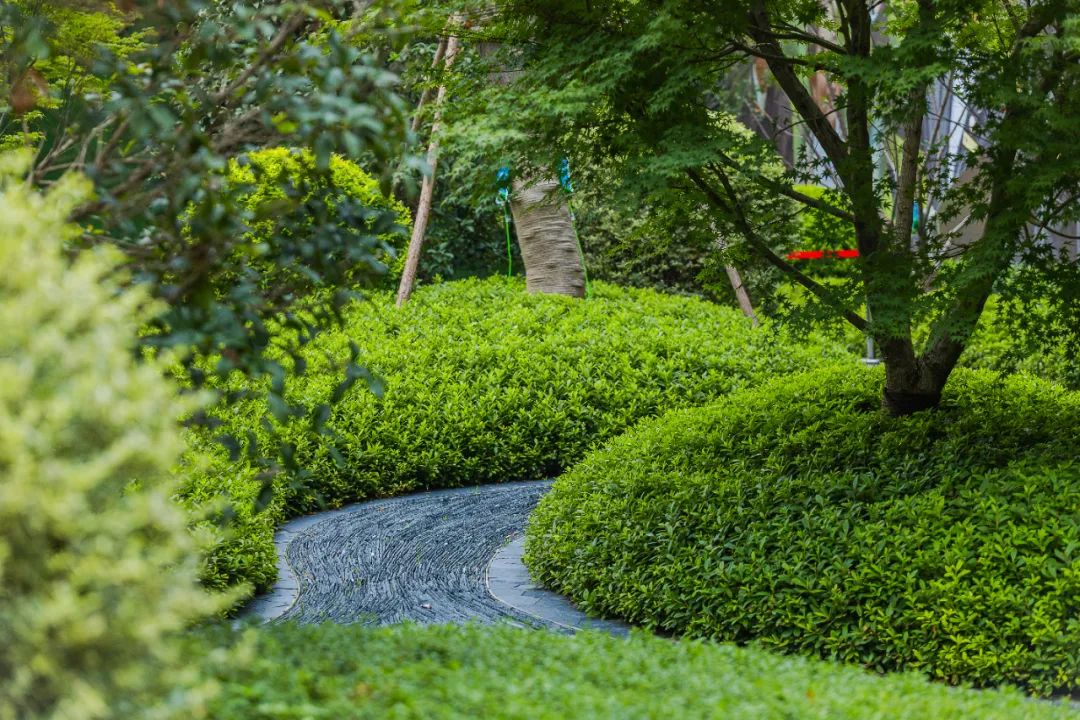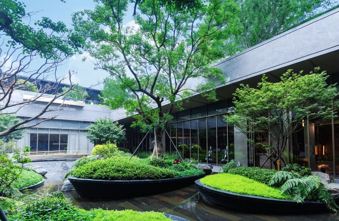 寻溪入园,邂逅贴近自然的真意,于潺潺水声中感受水的姿态,畅享无尽的美好生活。植物设计贯穿归家动线和活动功能区,打造大树剧场、乌桕林、水杉林、科普花园、银杏大道、富氧健身六大特色植物景观空间。