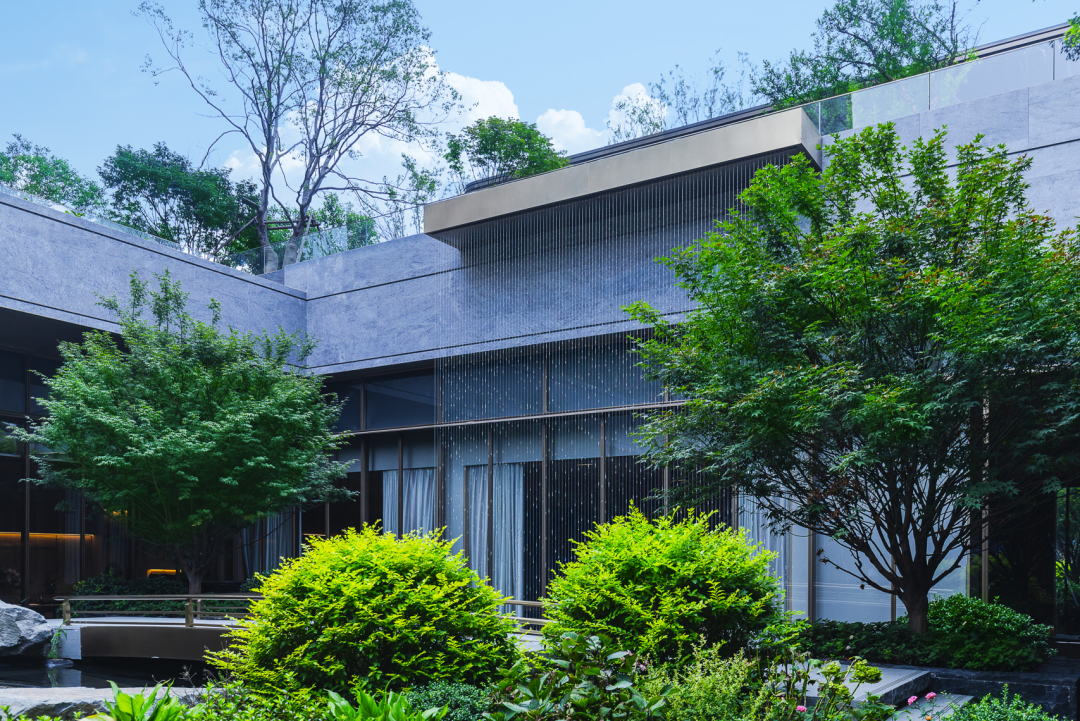 ◎约6米瀑布水景庭院洗尘归家,呈现出曲水流觞的意境: