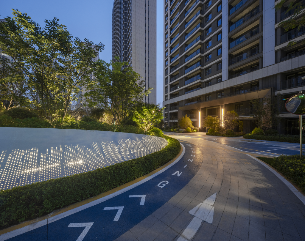沿街景墙连同绿篱形成连续的序列界面,配合优雅的曲线雕塑,成为一段情绪的引导,营造出既宽敞又高端的迎宾氛围,为归家之旅增添专属的尊贵体验。至雅至美,至精至臻,都定格在此。优美的曲线,纯净的质感,馥绿的自然,让每一次回家都成为充满仪式感的享受。