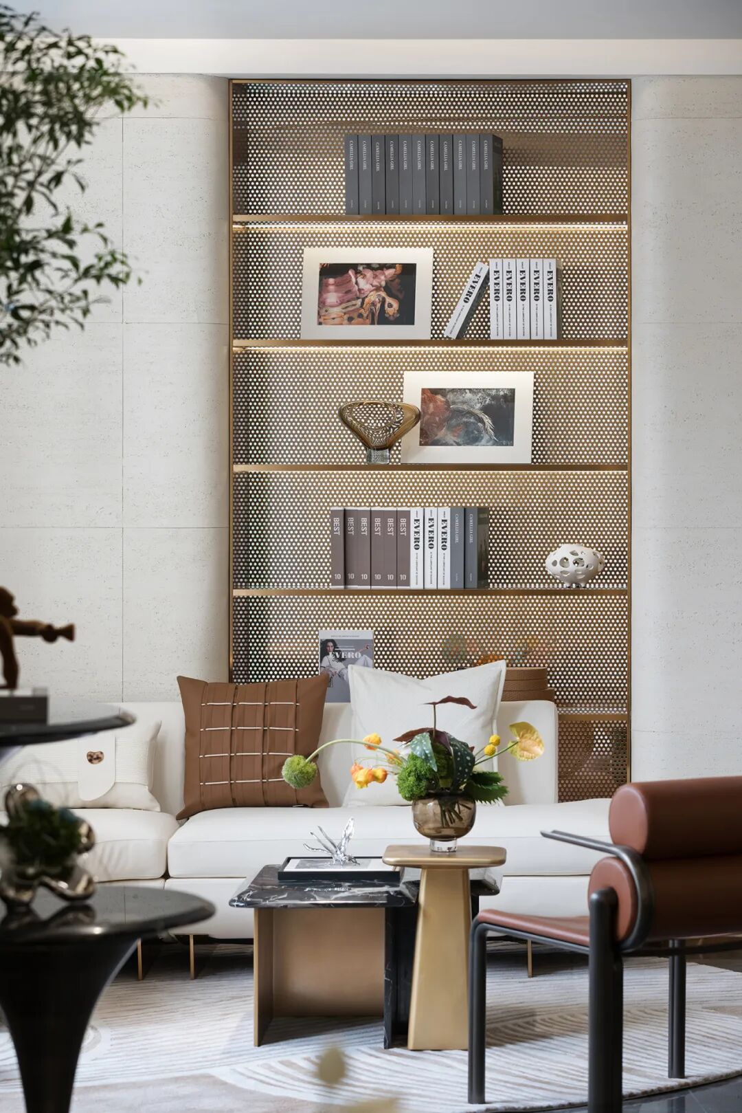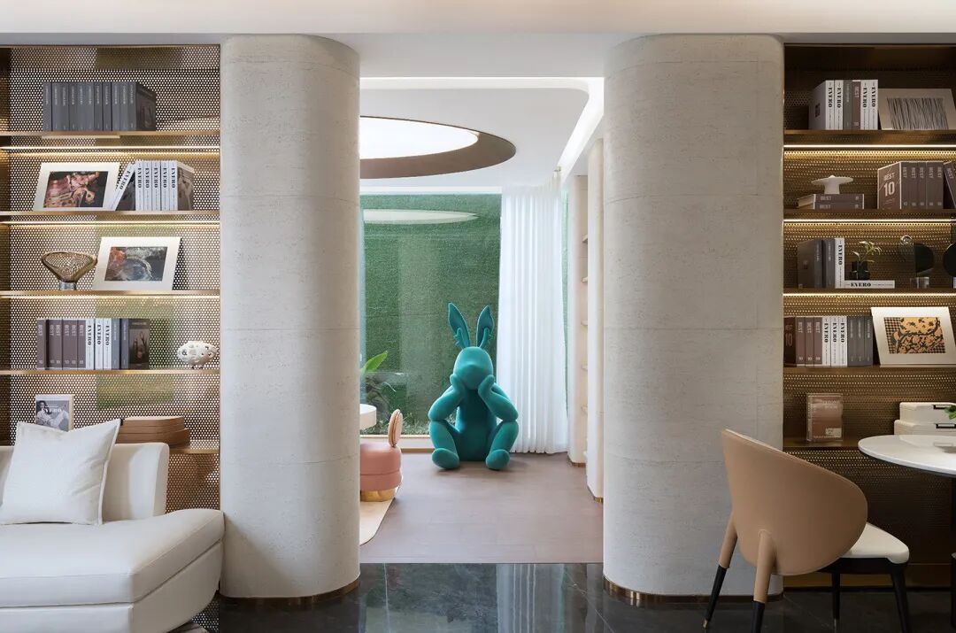 酒店式双入户海派轻奢大堂,仿奢石背景墙搭配艺术拼花,光影流动,品质归家仪式感