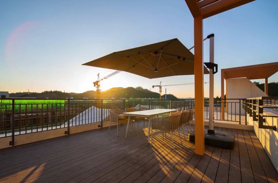 顶层星空露台是此户型最吸引我们的地方。恰如苏轼所吟诵,月上九门开,星河绕露台。一方星空露台,可化作空中花园、露天会客厅,将日月星辰的浪漫纳入美好生活的日常,俯仰间见天地见自己,只为极少数而来。 我们参观当天秋日恰好,若是傍晚时分,约上小伙伴带上宠物孩子支起烤架搭起帐篷就是「家的露营」了,也无需去户外,露台就是没有天花板的地方,不用打开星空灯抬头就能看见星光。