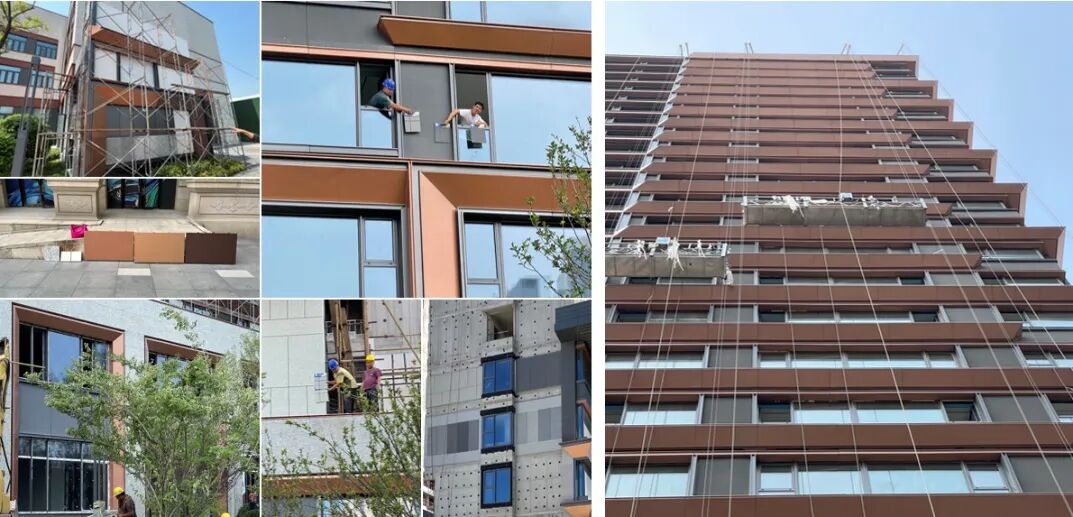 05.呈现 \ Present 高品质的效果呈现和成本控制,绝不是靠简单粗暴的材料替换来实现的。而是在设计过程中,有针对性地去平衡材料性价比、施工难度等多方面因素来寻求最优解。 为了保证建成效果,材料的选择上从打样到样板墙再到实体上墙,每个步骤材料的挑选,都细心斟酌仔细对比,力求建成效果能达到最优。并在不同的阶段对现场情况进行实时的跟踪,针对施工过程中出现的问题进行及时的调整和应对。 设计图纸的完成,远不是设计的结束。从工程开始到结束,团队除了在材料选样、样板墙、材料上墙等关键阶段频繁去现场与业主沟通,在整个建设阶段都会定期现场巡视,及早发现并解决问题。通过持续的现场跟踪,保证项目的完成度。 ▲落地效果把控——从选材到呈现全程现场追踪 ▲落地效果把控——精工呈现