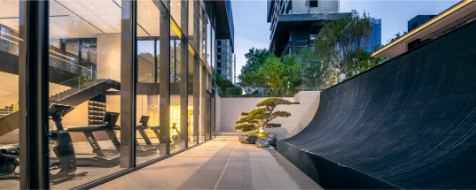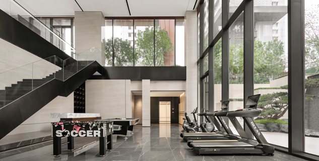 建筑、景观、室内设计一体化的高度整合,围绕下沉庭院、以高大的挑空空间与社区大堂联动的的生活美学馆,为居住者提供迎宾会客、健身休闲、儿童活动等功能空间。