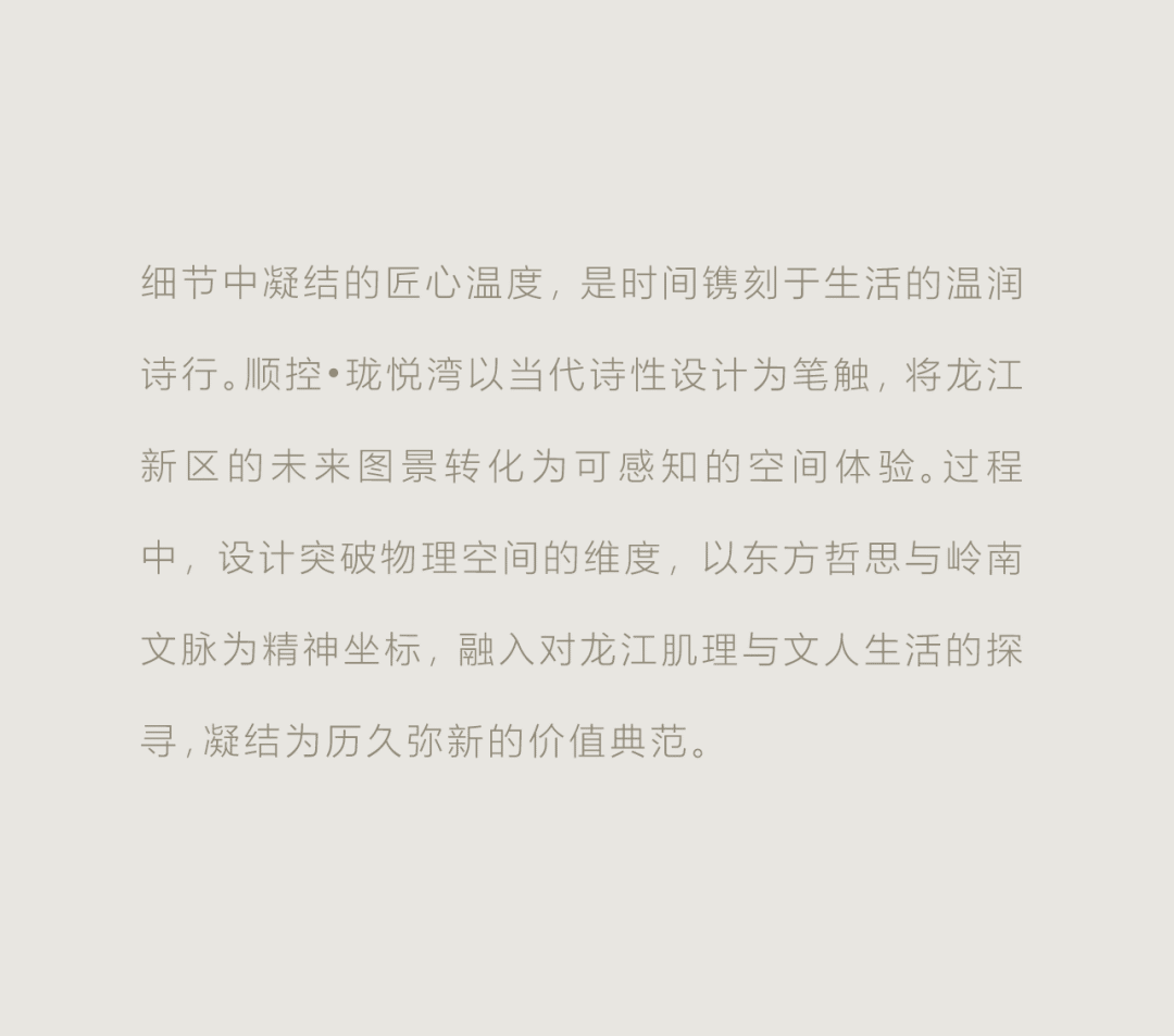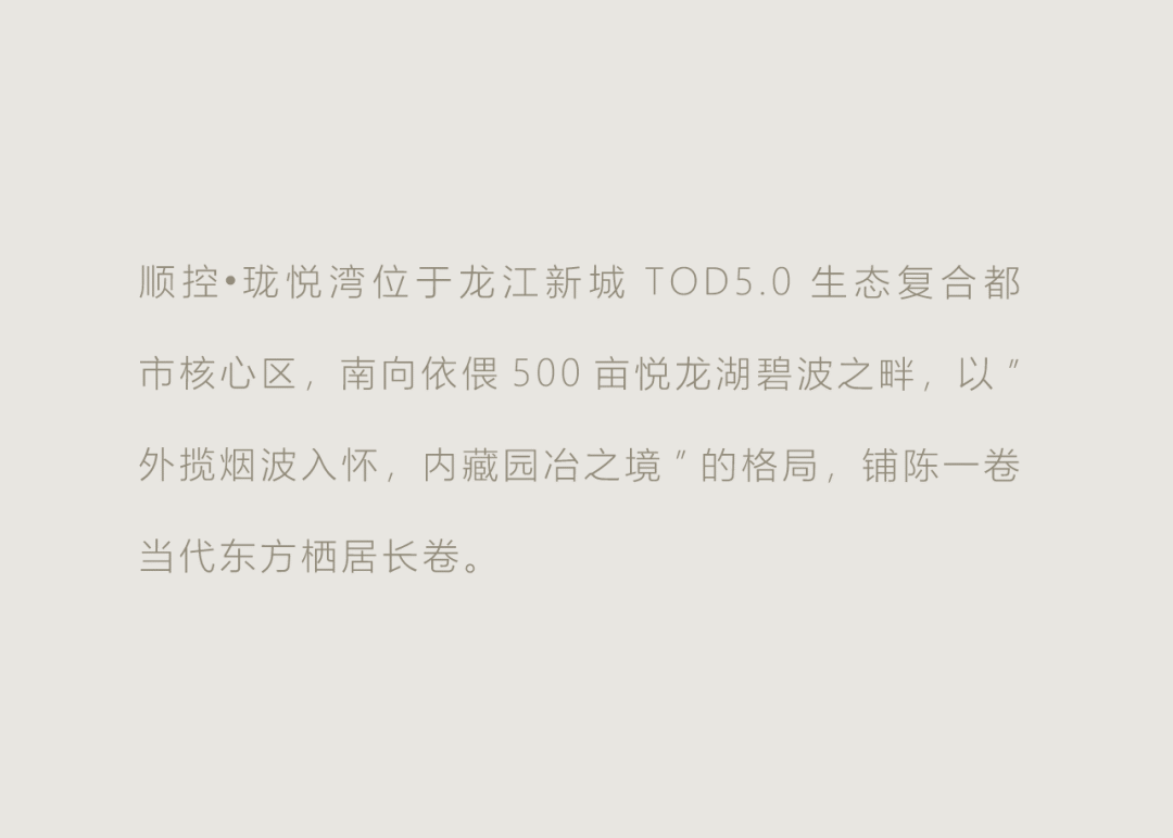 顺控·珑悦湾位于龙江新城TOD5.0生态复合都市核心区,南向依偎500亩悦龙湖碧波之畔,以”外揽烟波入怀,内藏园冶之境"的格局,铺陈一卷当代东方栖居长卷。