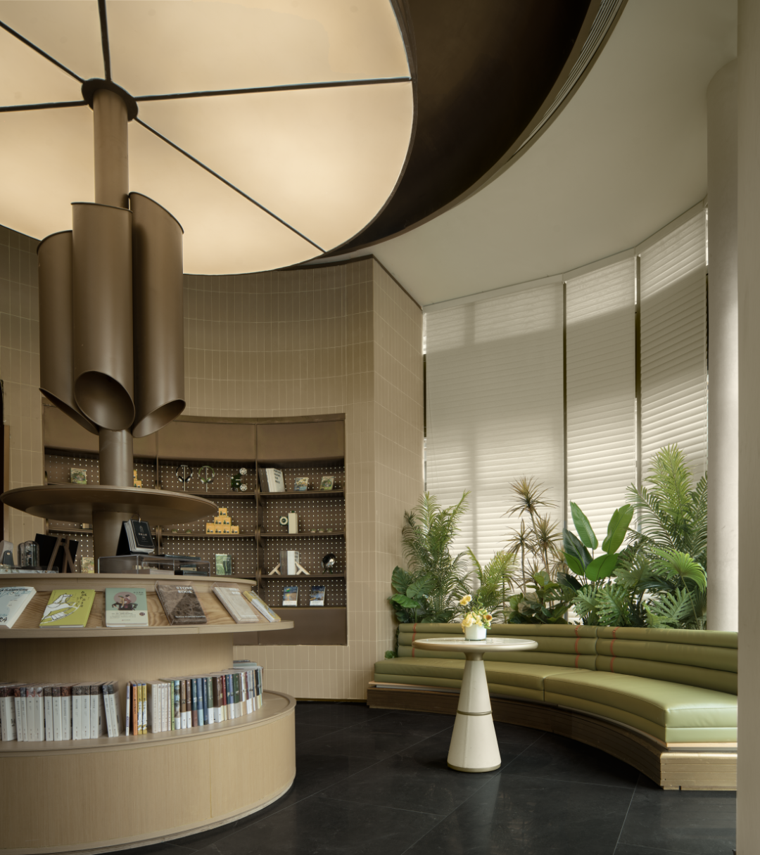 以古铜钢艺术经精湛工艺锻造而成的艺术装置为核心焦点,其独特的光泽与质感在空间中散发着艺术的张力。文创植入设计,加以绿植点缀,共同构筑起一个围合式的沉浸式阅读空间功能岛台。