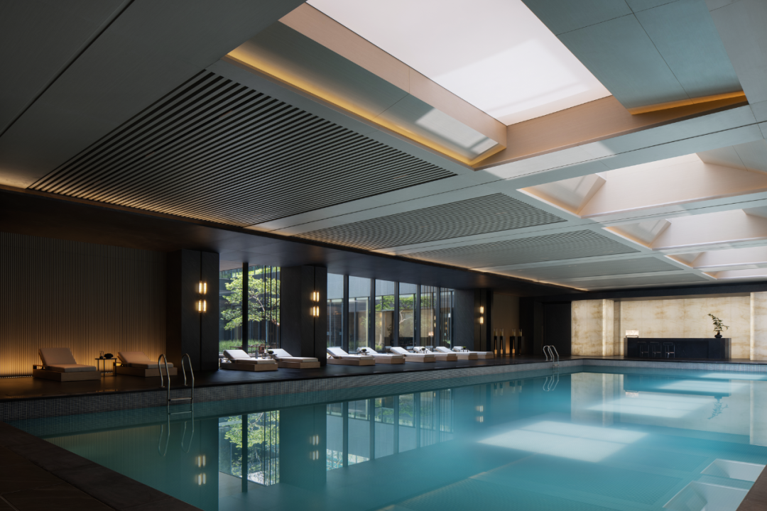 柔光几盏,窗影隐约,水波似平未平,天色将明未明。在这暗调之中,繁华、喧闹的城市外象被调和、静寂,四周沉下来,向着这面幽深如镜的水,敞开那华彩而井然的空间内里。