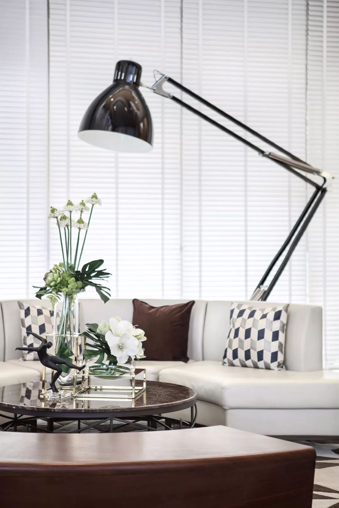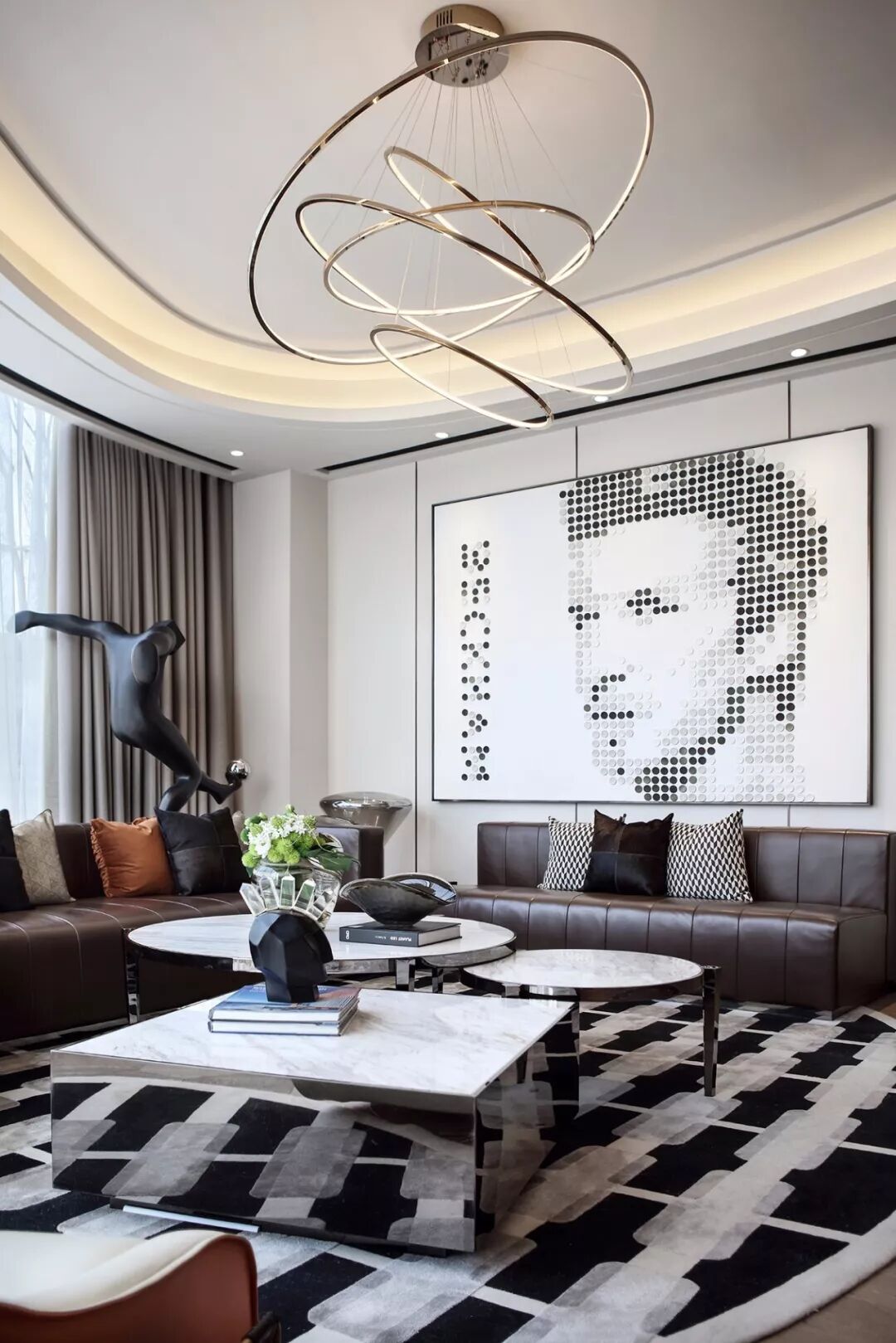 动感的吊灯与黑白艺术装饰极具视觉冲击力,白色理石桌面中和了空间过快的节奏,时尚又不失优雅,以现代手法演绎空间属性,更具开放性与包容性。