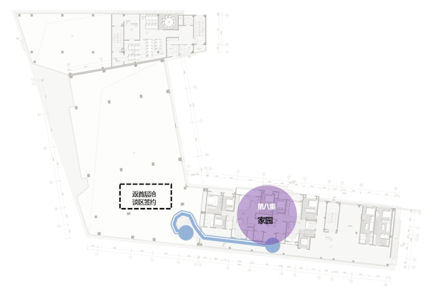 我们力求能够打造集办公、交互、休闲、观景为一体的现代化办公区,使得人们在建筑中可以从多个角度远眺城市的欣欣向荣。庞大的办公群要和谐地嵌入场地,考量人们的行动与感受进行设计,摆脱办公刻板模式,激发城市空间活力。