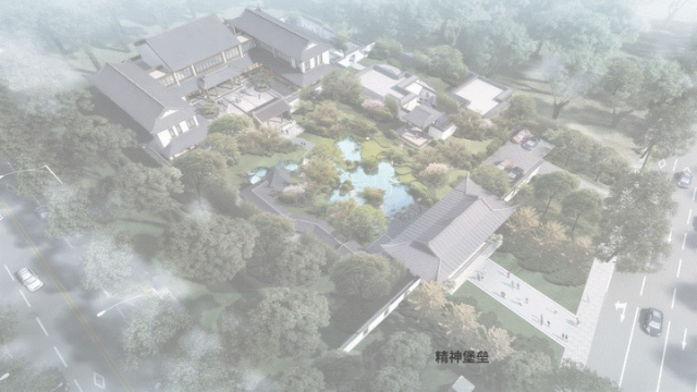 停驻在主建筑前,景观的温婉含蓄与建筑的恢宏大气形成强烈的对比。大开大合的营造手法,使白墙黛瓦呈现出庄严之势,让人在享受曲径通幽的静谧之后迎来归家的荣耀感。
