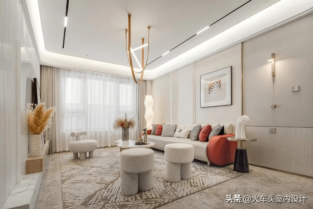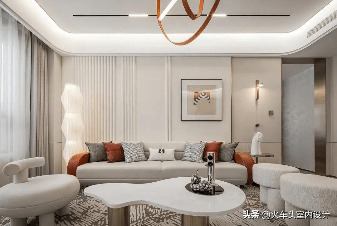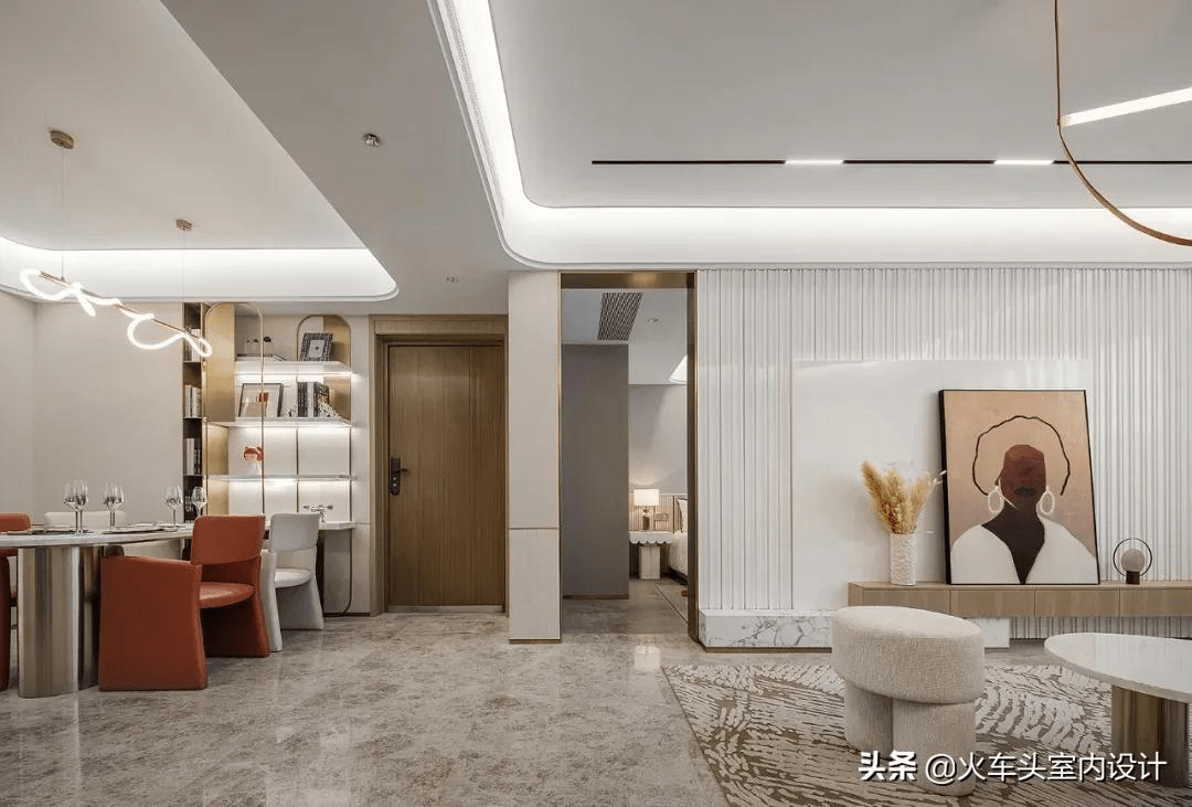 本户型的居住人群定位于追求品质生活的年轻家庭。以物件的艺术作为创意的发散点,设计在柔和色调的铺陈中,将家居形态与质感的描摹,转化为生动诗意的空间语言,表达年轻个性化的生活态度。