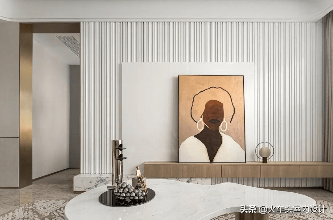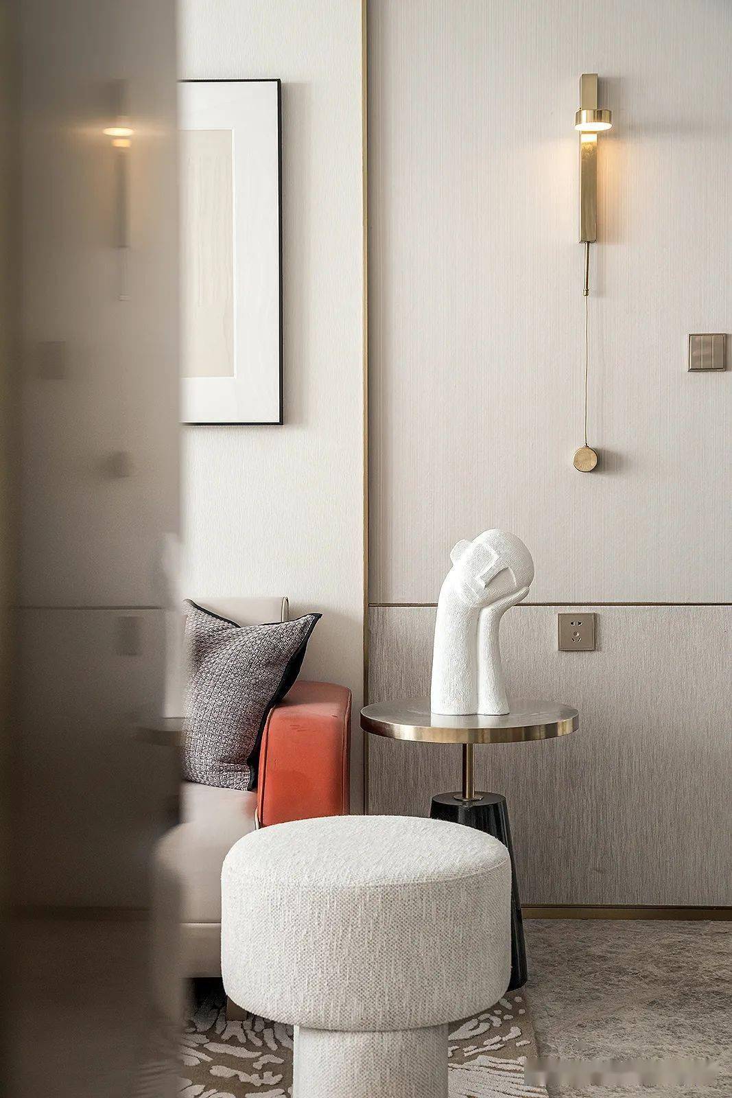 作为室内的开篇,形态各异的物件陈设成为空间灵动的美学注脚。灯具的流线造型、人物绘画的简约线条、艺术装置的波浪纹路、小巧坐椅的圆弧曲线......多种趣致的几何形制相得益彰,一同描绘简洁有力而又丰富多彩的画面场景,亦延伸出充满温度的生活况味。
