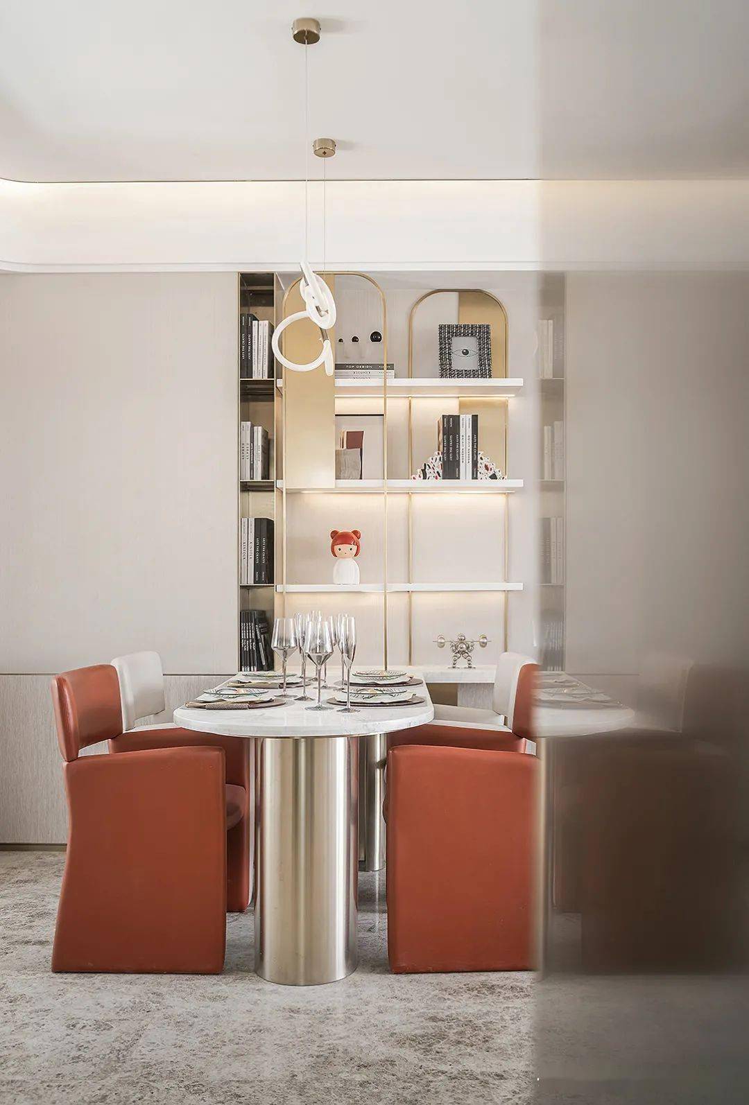 关注于颜色与材质,设计选用皮质与金属的勾勒、红与白的对色碰撞,为餐厅空间增添经典的时尚气息,消弭了艺术与日常生活的距离,一种精致的生活态度呼之欲出。